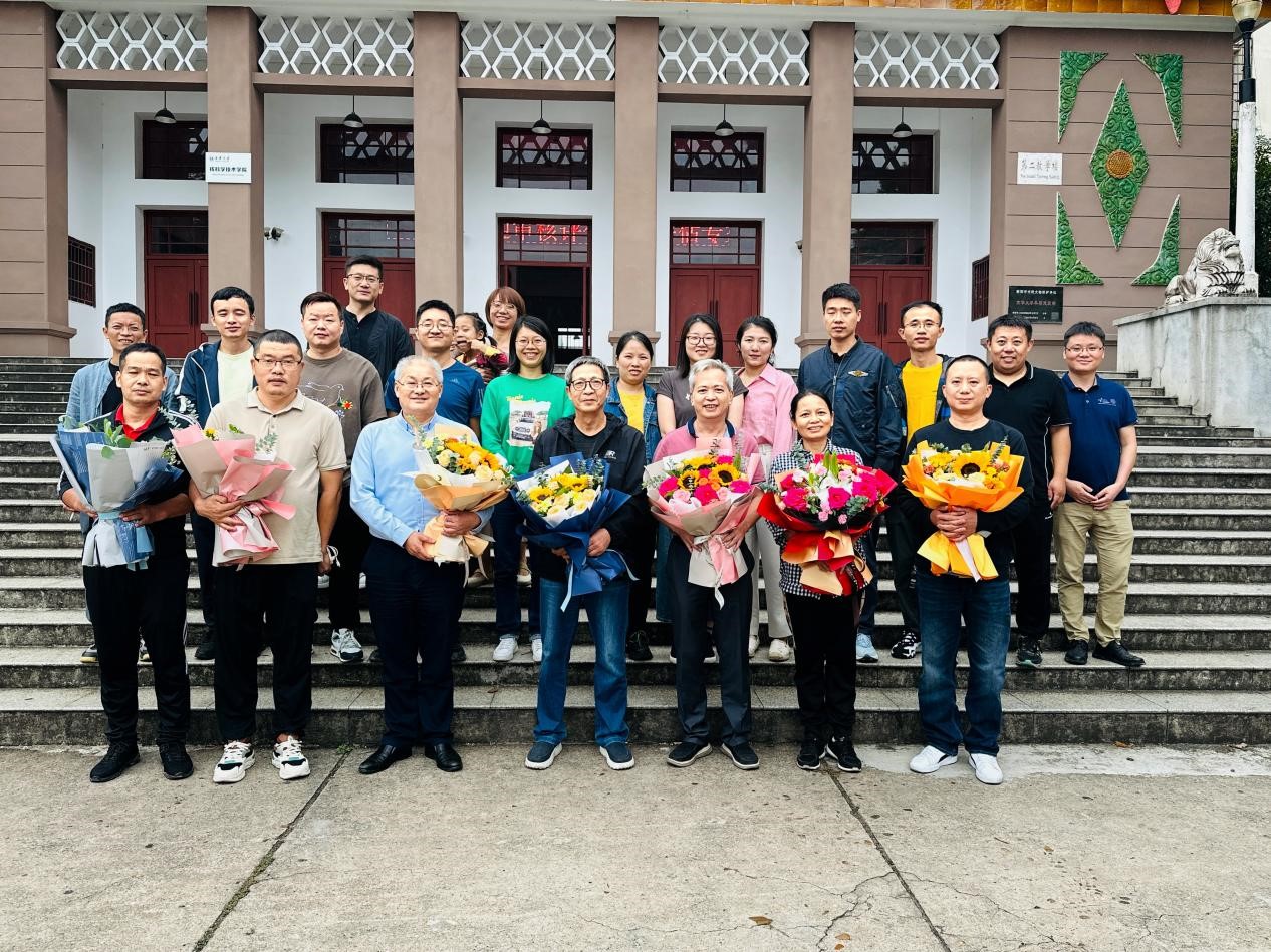 活动结束后,校友们和参会老师在学校核学楼前进行了合影留念。