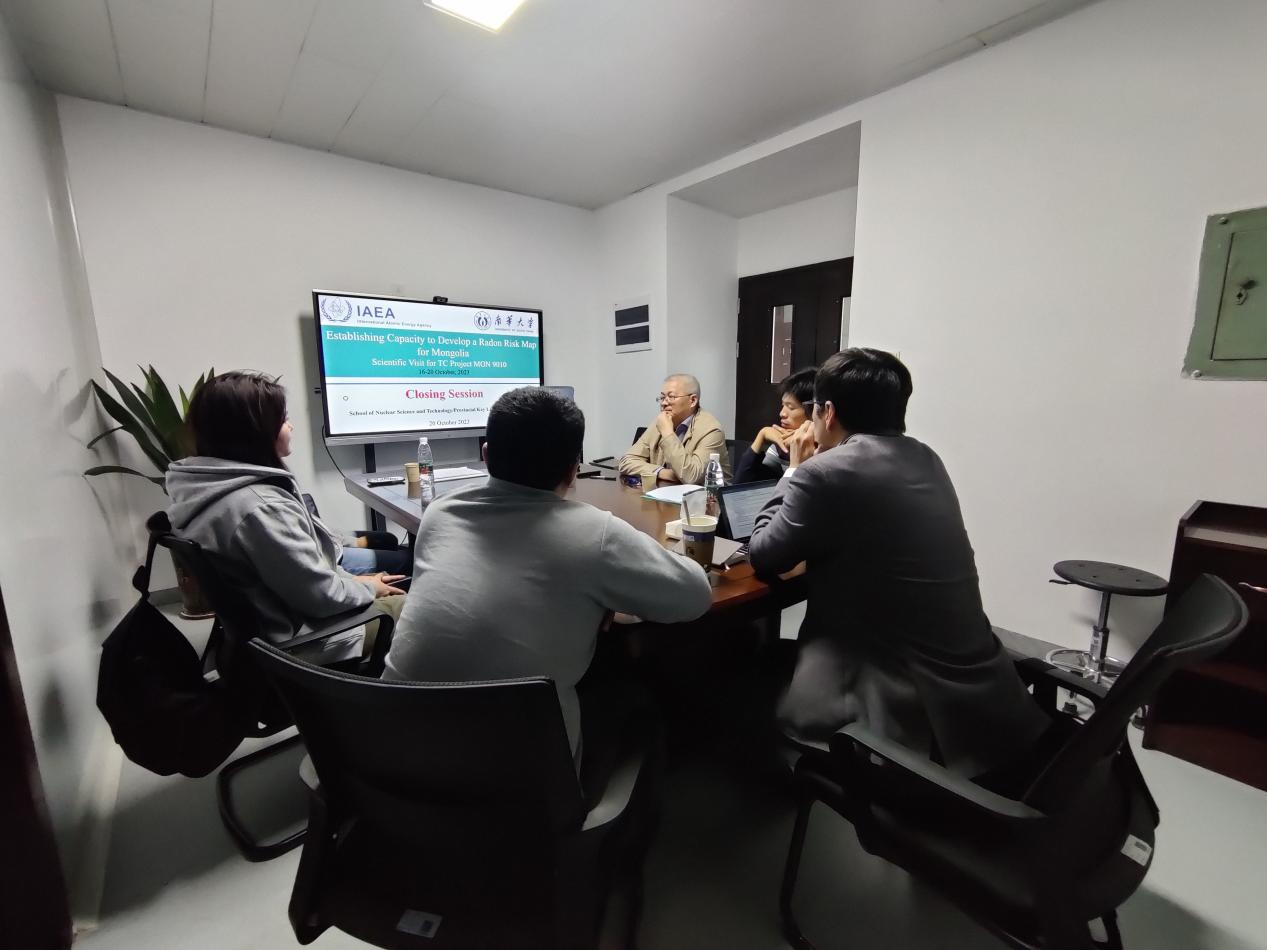 10月20日下午,在氡湖南省重点实验室主任会议室举行了此次活动的闭幕会。会上,肖德涛教授对此次科学访问活动进行了总结。他指出,此次活动对进一步提升氡湖南省重点实验室主任的科研能力和国际化水平起到了非常积极的作用,希望此次活动给蒙古国关于氡的国家计划起到了一定的帮助作用,后续能够进一步加深交流与合作。随后,NYAMDAVAA Enkhgerel先生和SHAGJ Sandag-Ochir先生对参与此次活动并提供帮助的老师表示感谢,希望此次交流学习收获能够帮助蒙古国建立相关的规章制度以及实验能力,进一步加深中蒙相关领域的合作。