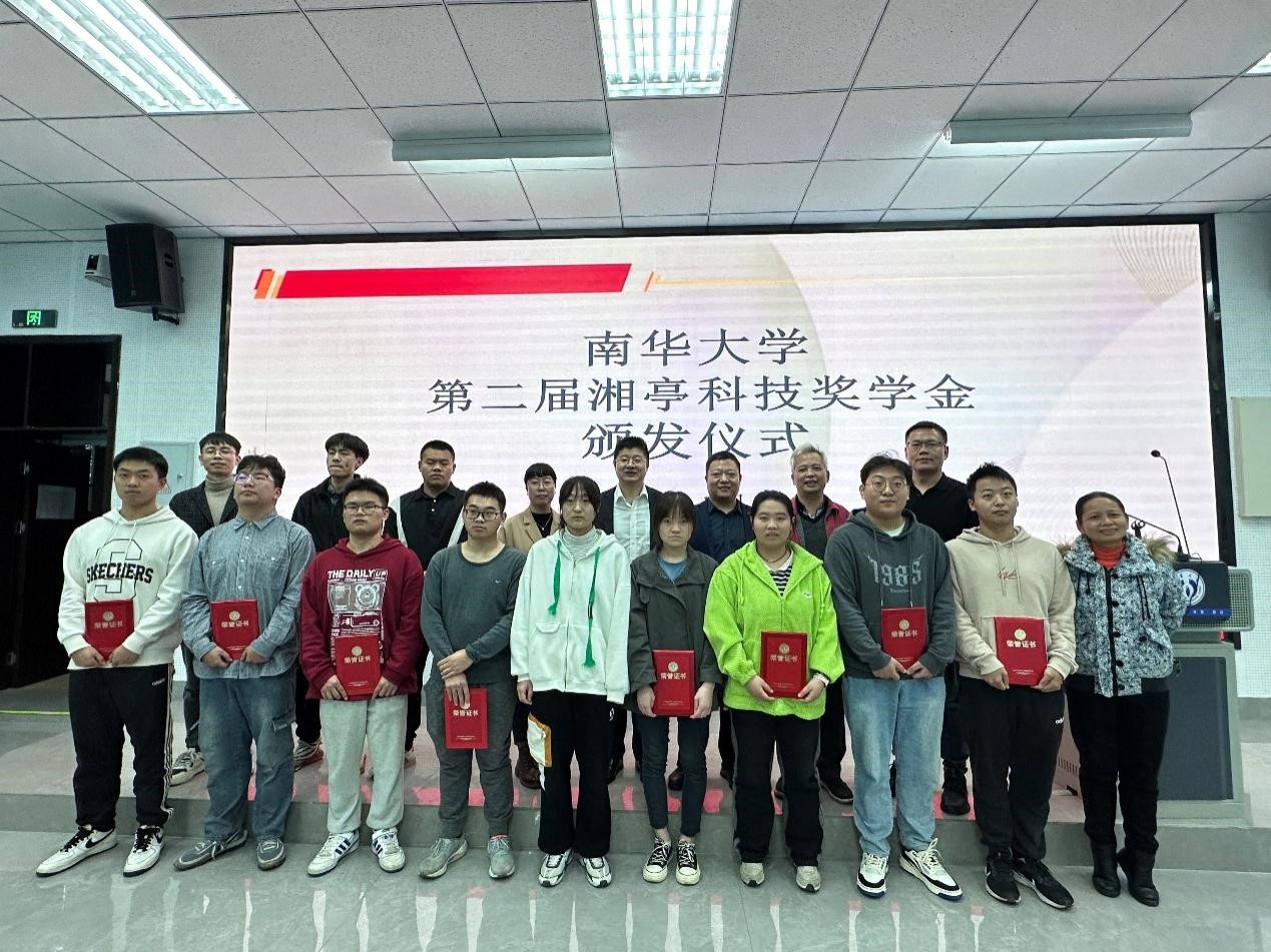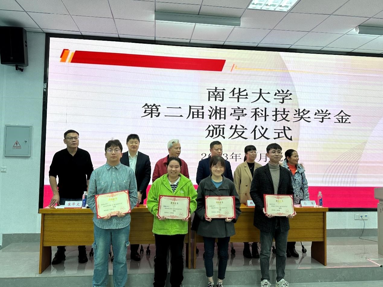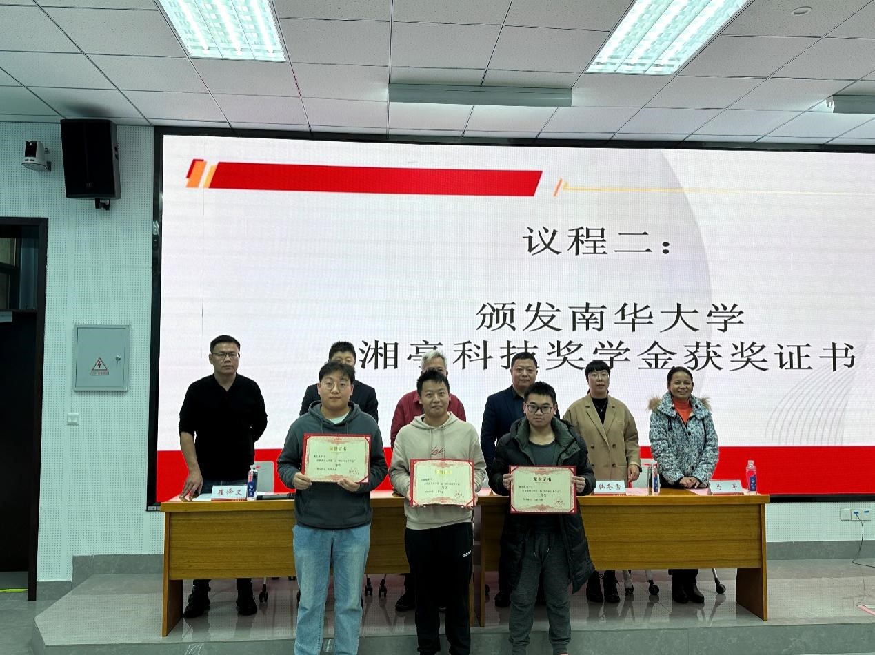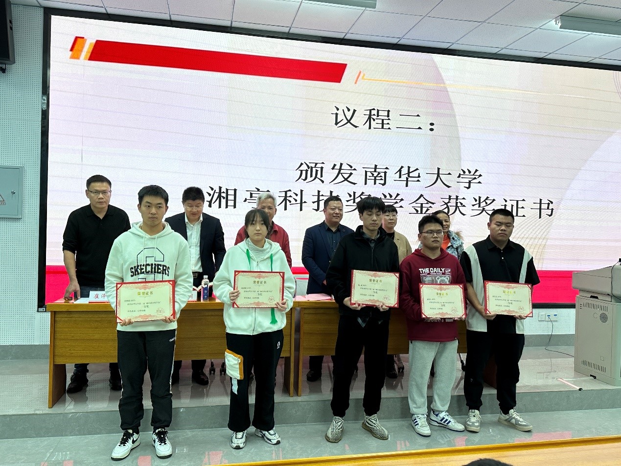 随后,参会嘉宾为湘亭科技奖学金获奖者颁发获奖证书。