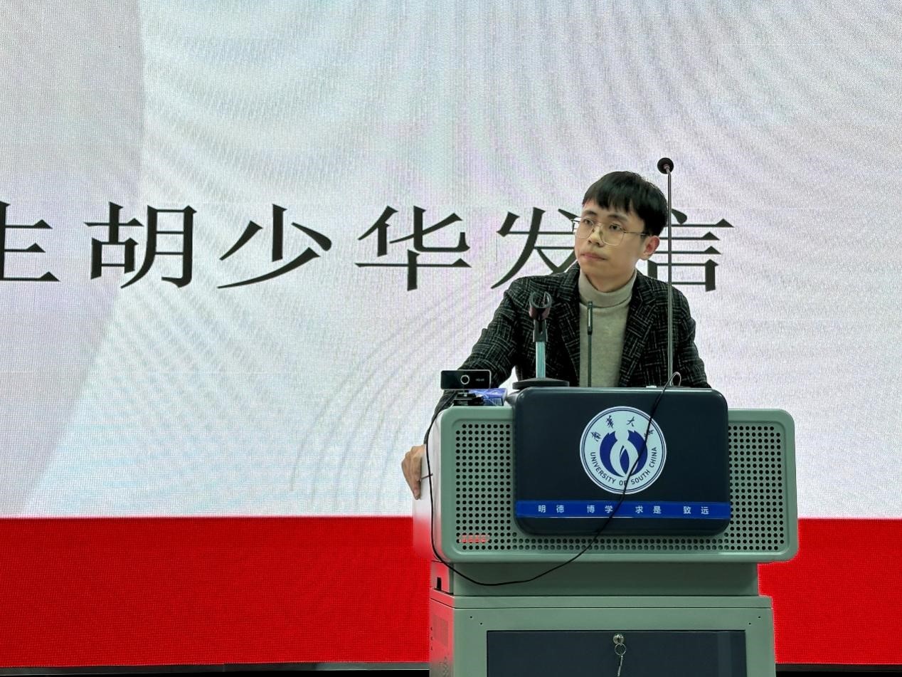 博士研究生获奖代表胡少华、本科生获奖代表彭兴宸两位同学从各自所处的人生阶段谈及了湘亭科技奖学金对自己的意义,并且向湘亭科技有限公司、学校、学院表达了感谢和敬意,他们表示会以此为鞭策,砥砺前行,努力充实和完善自我,积极投身于核事业建设之中。