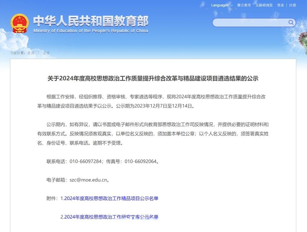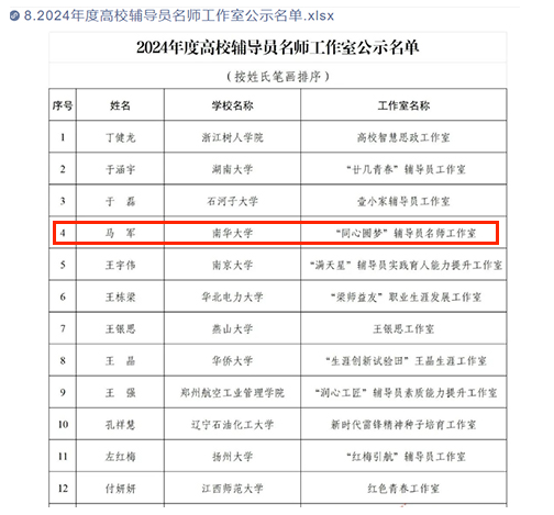 近日,教育部公示2024年度高校思想政治工作质量提升综合改革与精品建设项目遴选结果,我校“同心圆梦”辅导员工作室成功入选“2024年度高校辅导员名师工作室”,为湖南省省属高校唯一入选的辅导员工作室,也是我校首个国家级辅导员名师工作室。