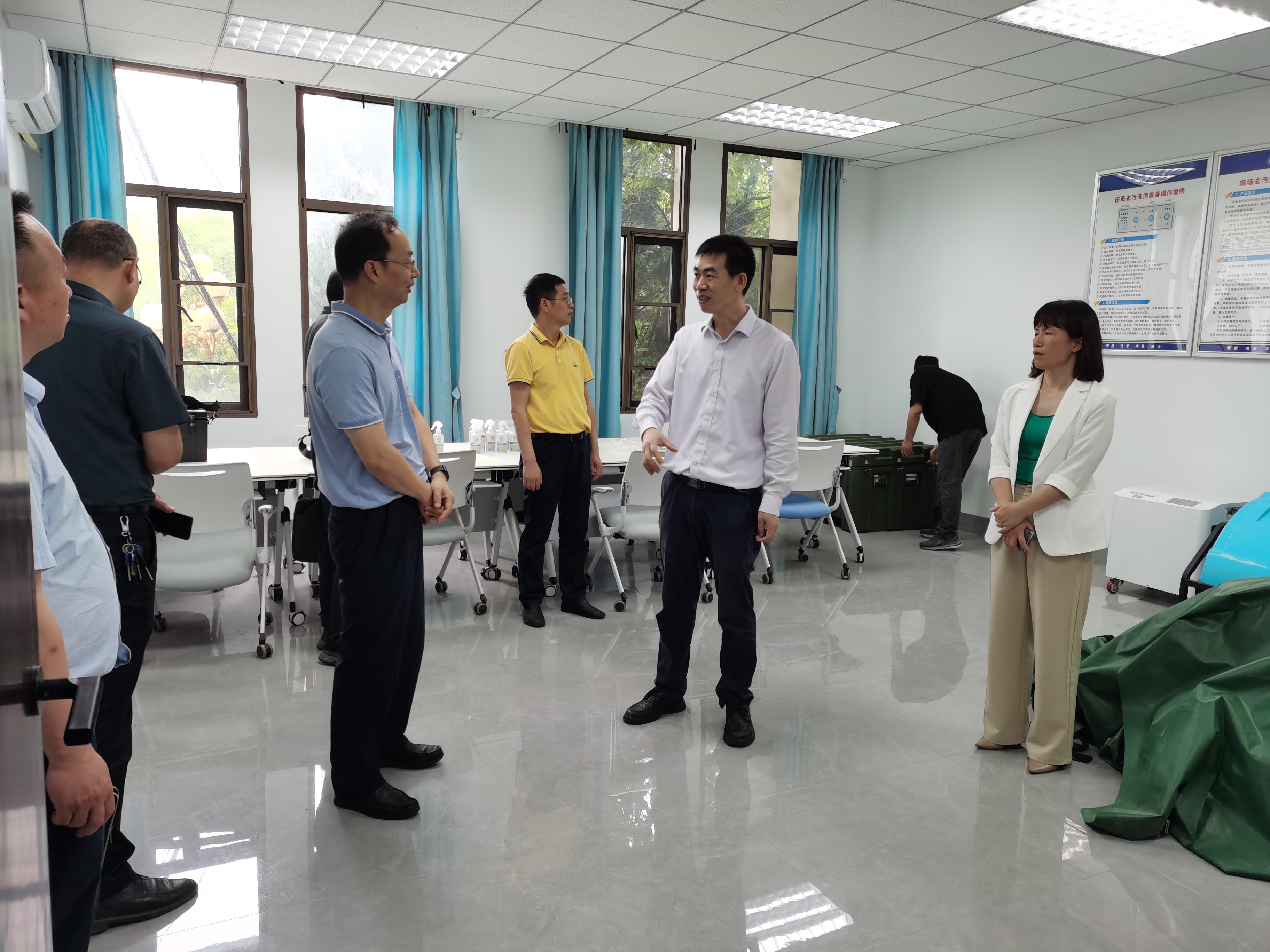 座谈会后,刘剑一行检查了源库,参观了国家核应急宣传和培训基地、核辐射生物损伤与修复实验室、待建乙级放化实验室等。