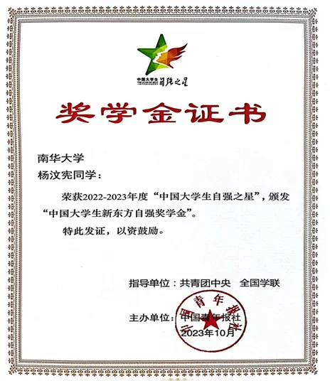 近两年,学院涌现“中国大学自强之星”、湖南省第十七届“芙蓉学子 自强不息”奖获得者杨汶宪,湖南省优秀大学生党员、湖南省第十七届“芙蓉学子·榜样力量”优秀大学生雷济充等一批榜样人物和全国高校“活力团支部”核物理专业2020级拔尖班团支部等榜样力量。学院思想政治教育活动也呈现鲜明的核特色,取得一定成绩:“两弹一星”精神研究会志愿服务宣讲团入选2024年全国大学生科技志愿服务宣讲团,“核星闪耀”志愿服务团入选全国2024年雷锋精神志愿服务团。在各项竞赛中,荣获全国第八届核+X创意大赛二等奖1项,三等奖3项,优秀奖4项,荣获湖南省第七届全国大学生思想政治理论课研究性学习成果展示竞赛一等奖1项,荣获湖南省第三届“核+X”创意大赛“优秀组织奖”、一等奖4项、二等奖6项、三等奖39项。