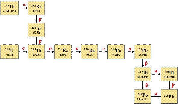 212Pb是为数不多的可应用于恶性肿瘤靶向α放射性治疗(TAT)的核素,在前列腺癌、乳腺癌、胰腺癌治疗方面具有重要应用。然而,跟其它TAT核素一样,制约212Pb药物研发及临床应用的一个关键因素就是供应严重不足。考虑到212Pb是232Th的衰变子体之一,如果能开发从天然钍中高效提取212Pb的方法和技术,则有望从根本上解决212Pb供应不足的瓶颈问题。图1为天然232Th的衰变链。根据计算,232Th仅需50年左右时间即可达到长期平衡。在长期平衡状态下,1000 t232Th中包括212Pb和228Ra等在内的各核素均可以达到109 Ci,这个量预估几乎可以满足全世界对212Pb的研究和应用需求。