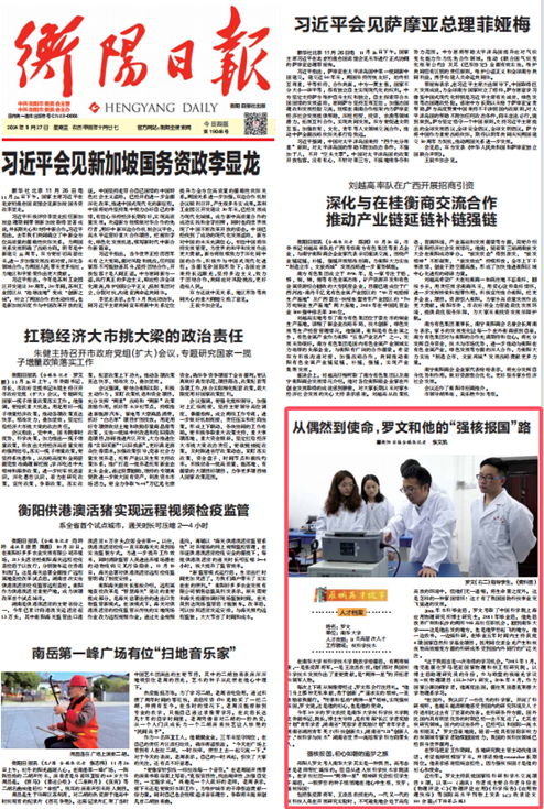 11月27日,衡阳日报头版报道了我院罗文院长相关事迹。
