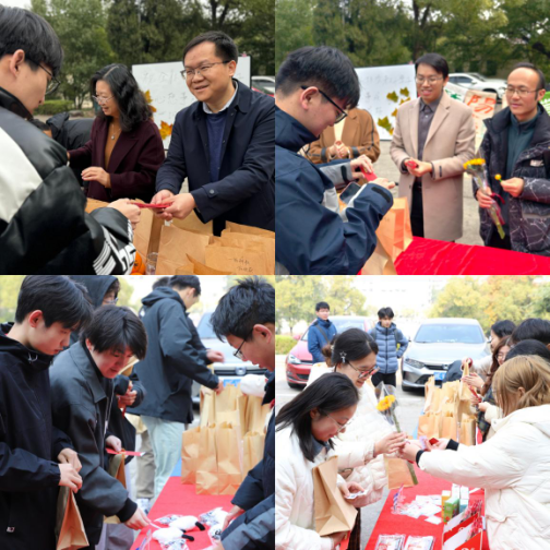 19日中午,学院在核院前坪设置展台,为同学们精心准备了抽“上上签”礼包活动,院党委副书记徐婵娟,副院长王晓冬、陈珍平、赵鹏程出席活动,班主任代表尹陈艳、张根发,辅导员朱菲菲、周华国、曾永艳、肖玉、罗上凯及部分2021级同学和低年级学生代表参与活动。