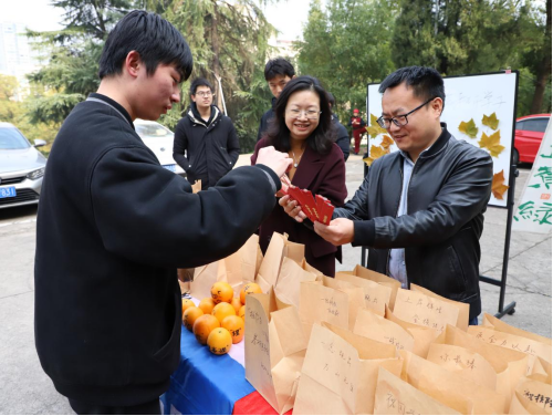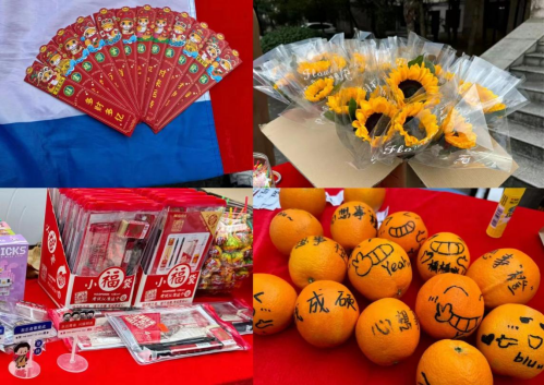 活动采取抽“上上签”方式,每位到场同学都可领取一份“上上签”大礼包固定礼物:一袋橙子,与此同时,同学们还可以根据抽取的“上上签”内容兑换向日葵、棒棒糖、孔庙祈福文具袋、创意文创产品等礼物。“一战成硕,金榜题名!”“考研是你,上岸是你!”……礼品袋和橙子上布满了低年级同学们的手写祝福语,领导老师们在现场也为学生们送去心想事“橙”、一举夺“葵”、考试棒棒等美好祝愿,祝福全体考研同学考试顺利,如愿以偿。