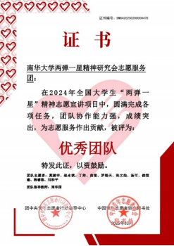2024年2月-4月,团中央青年志愿者行动指导中心、中国核工业集团有限公司共同开展了2024年全国大学生“两弹一星”精神宣讲项目,来自870所高校的1000支大学生志愿服务团队入选。活动结束后,伟的国际1946bv两弹一星精神研究会志愿服务团,凭借出色的组织能力、高效的团队协作和显著的活动成效,于全国1000余支志愿宣讲团中脱颖而出,被评为“优秀团队”。