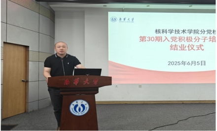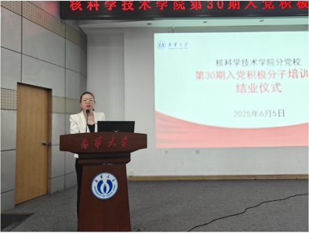科研与实践,以“严谨、创新、奉献”的核科学精神服务国家“双碳”战略;三是做“党纪党规的守护者”,以党员标准严格要求自己,实现知行合一。她强调,入党积极分子不仅是身份标识,更应成为“一面旗帜”,在服务社会与国家发展中彰显青春价值。