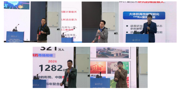 下午的研究生汇报环节由陈思涵、肖敏主持,来自多所高校的研究生代表聚焦“核+X”交叉领域,涵盖甲状腺靶向显像、放射性废物固化、核动力故障诊断等前沿方向,展现扎实功底与创新思维,师生围绕研究细节深入研讨。