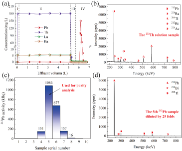 针对上述瓶颈问题,陈立丰等人立足我国232Th资源较为丰富的国情,在这项工作中首次提出了一种基于阴离子交换的212Pb制备新方法及原理。通过向多核素体系中引入卤素离子与Pb(II)配位,然后借助阴离子交换树脂SiPyR-N4(实验室自行研制)对体系中阴/阳离子种态的精准识别,可高效实现对232Th衰变链中212Pb的一步精准分离。以2公斤硝酸钍作为原料开展热态分离实验,最终获得了约2.07 MBq的212Pb样品,放射性核素纯度达到了99.9%,化学回收率达到了迄今最高的88.3%。与此同时,研究人员还基于先进光谱学手段和理论计算,成功阐明了SiPyR-N4树脂在上述体系中对212Pb的选择性分离机制。据悉,该工作现为国际上第一例基于阴离子交换从232Th衰变链中定量分离得到212Pb的案例,也是国际上第二例从232Th衰变链中直接分离得到MBq级212Pb的案例。该工作的完成,意味着从自然界中低成本提取稀缺核素212Pb成为了可能,并使得212Pb的制备可以从此不再受稀缺核素228Th的供应制约。