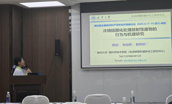 研究生报告环节中,周怡同学作题为“冷烧结稳定化处理放射性废物的固化行为及核素固定机理研究”的报告。