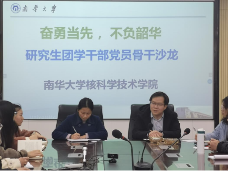 随后,马军老师对大家提出了几点要求:一、作为团学干部党员骨干一定要自觉抵住世俗的喧嚣,用自己的一言一行向广大同学传递积极向上的力量;二、作为团学干部党员骨干一定要主动提高自身服务同学的意识和能力,在工作中提高自身素质,牢记“只做学生友、不做学生官”的宗旨;三、作为团学干部党员骨干一定要从发扬核院特色为出发点,在工作中要有大格局意识,要在提高研究生学术水平、科研发展等方面多做工作,各年级之间要做好工作的科学传承,共同营造核院研究生良好的学术氛围。
