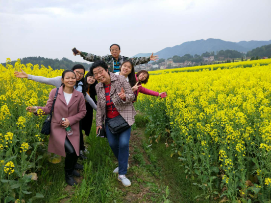 3月11日上午,bv1946伟德国际始于英国分工会组织全院女职工前往位于衡阳县的库宗桥华山村的千亩油菜花基地开展“相约油菜花田”的活动。学院党委书记肖德涛、党委副书记刘和福、副院长王振华、夏良树、工会全体委员以及全体女职工参加了此次活动。