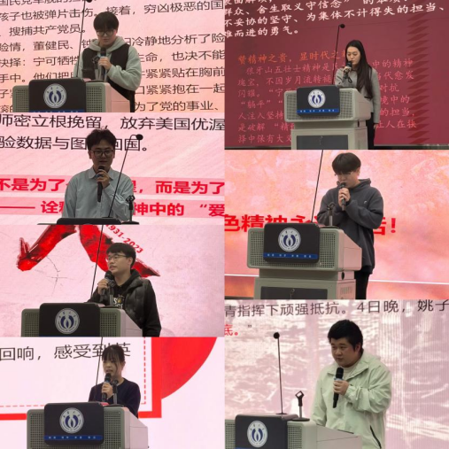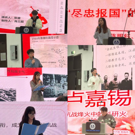 进入比赛环节,主持人陈江银介绍了赛事评分细则,随后13组选手依次登台亮相。选手们以“抗战精神与科研报国”为核心,从多元视角展开演讲,有以1944年豫湘桂战役中军民“宁死不屈、坚守阵地”史实为切入点,用细腻的讲述还原烽火岁月里的家国情怀;有聚焦卢嘉锡等爱国科学家“拒绝美国密立根实验室挽留、放弃优渥条件毅然归国”的抉择,串联起核科技领域“把论文写在祖国大地上”的精神传承;还有结合董健民“宁可牺牲生命,也不泄露党的秘密”、狼牙山五壮士“舍生跳崖守气节”等英烈事迹,诠释“危难时刻显担当、取舍之间见大义”的崇高品格。选手们的表达慷慨激昂、叩击人心,真挚的情感与深刻的思考,让现场观众多次响起共鸣的掌声。