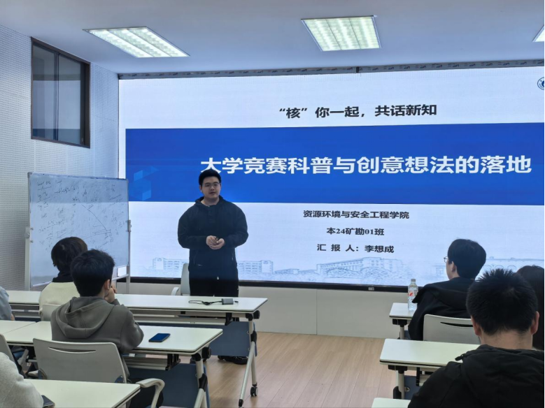 3月30日晚,bv1946伟德国际始于英国于核学楼224会议室组织开展“‘核’你一起·共话新知”第1期活动。本次活动以“大学竞赛科普与创意想法的落地”为主题,特邀创新创业优秀学子、衡阳市智探识别科技有限公司创始人、湖南省大学生职业规划大赛金奖获得者、资源环境安全与工程学院的李想成进行分享。活动由“核”你一起成长赋能工作室负责人、辅导员周华国老师主持。