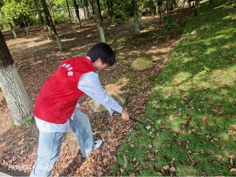 活动筹备阶段,院团委青年志愿者工作部提前规划清洁区域、明确分工安排。随后,志愿者们有序集合,领取垃圾袋、手套、火钳等工具,迅速投入校园清洁工作中。活动期间,志愿者们重点清理校园主干道、教学楼周边绿化带及公共区域角落,俯身深入草丛,细致捡拾隐藏其中的烟头、塑料瓶、纸屑等杂物,同时对路面散落垃圾、公共设施周边污渍进行全面清理。经过数小时的集中清洁,校园环境焕然一新:主干道路面干净平整,绿化带恢复清爽整洁,公共区域秩序井然,校园整体面貌得到显著提升。