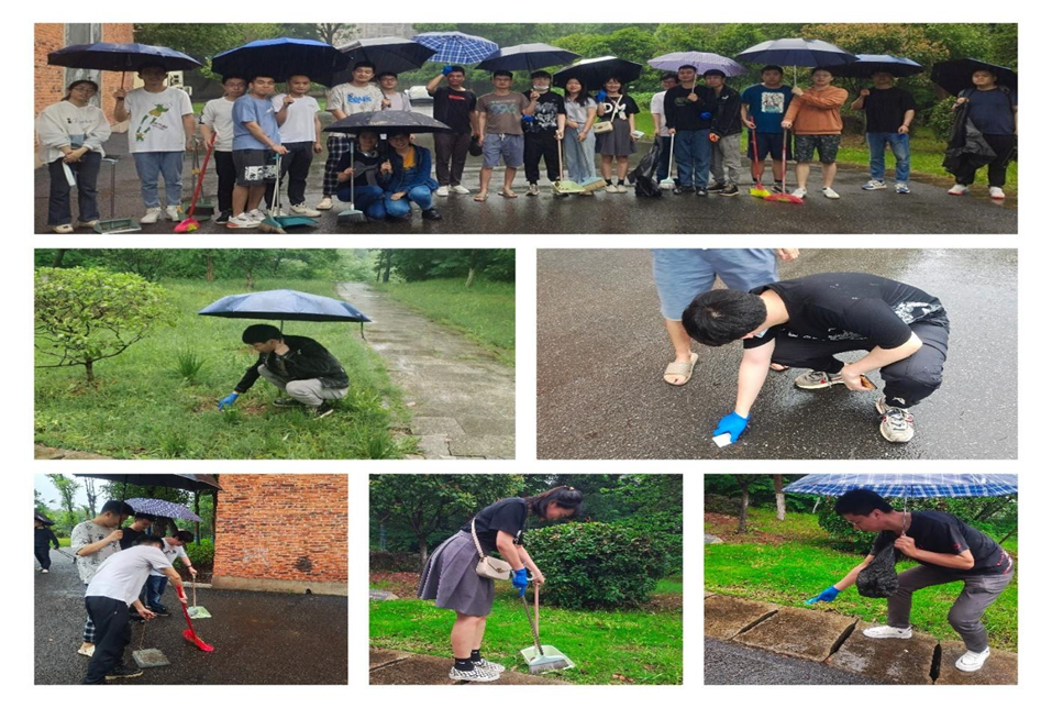 5月27日下午16:30,由院党委书记赵立宏带队,院党委副书记马军、院教师第一党支部书记杜雪成、院学生第一党支部书记朱菲菲、院教师第三党支部支委汤凌志等老师作为责任区负责人带领活动参与者在校财务处对面篮球场集合分发劳动工具强调活动目的后根据责任区安排,大家一起捡拾责任区域路面、绿篱下及绿地内的白色垃圾、瓜果皮核、烟头及其他废弃物;清理责任区域楼房的外墙面、电线杆上、树干上、篮球架及网球架上的牛皮癣;清除责任区域绿地的杂草、枯枝败叶等,保持果皮箱及果皮箱周边清洁干净;最终将所有清扫垃圾集中堆放入垃圾箱。