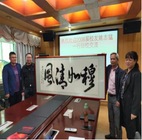 姚志猛在写春联 姚志猛(左二)回母校交流,赠送书法作品给学院