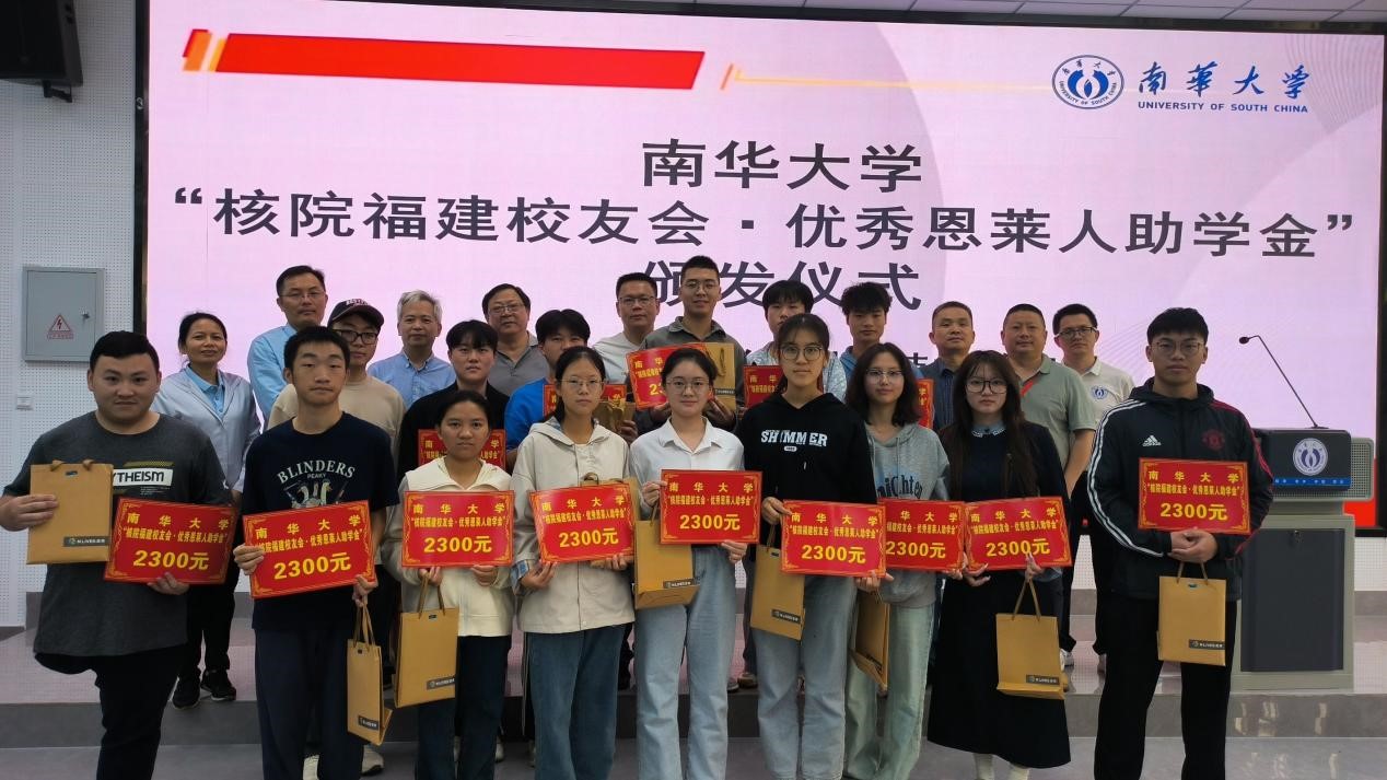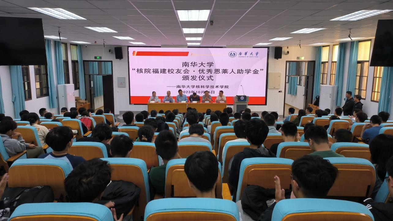10月16日上午,伟的国际1946bv“核院福建校友会•优秀恩莱人助学金”颁发仪式在核学楼核应急宣传和培训基地学术报告厅举行。伟的国际1946bv深圳校友会会长暨深圳市核应急办主任龙勇、bv1946伟德国际始于英国福建校友会会长柏朋刚、福州恩莱电子商务有限公司副总鲍兆新、校友代表莅临活动现场,伟的国际1946bv学工部副部长崔泽文、bv1946伟德国际始于英国党委书记赵立宏、党委副书记马军、学院辅导员代表、学生代表参加仪式。仪式由赵立宏主持。