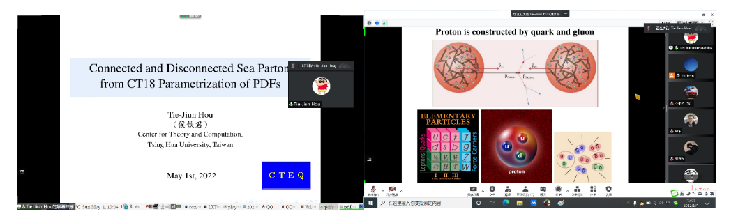 2022年5月1日下午,正值国际劳动节之际,来自台湾的侯铁君博士受邀远程给核院师生作了题为“ConnectedandDisconnectedSea Partons from CT18 Parametrization of PDFs”的学术报告。报告由副院长郑波教授主持,学院部分教师、研究生参加了此次学术交流。