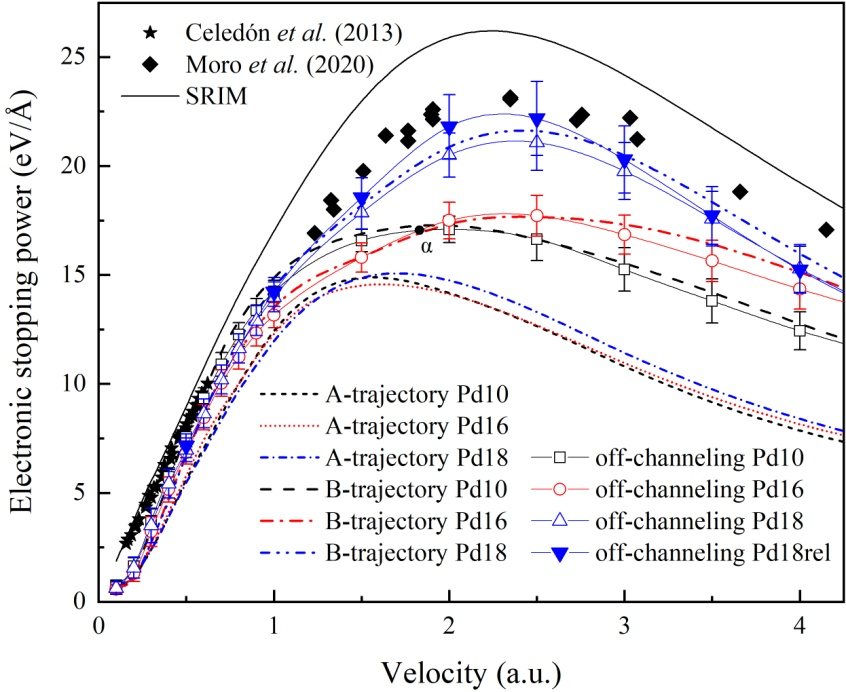 最近,bv1946伟德国际始于英国毛飞教授团队对质子辐照条件下金属钯(Pd)中内层电子激发的微观机制研究取得了重要进展。该团队通过建立包含了内层电子构型的钯原子赝势模型,采用第一性原理激发态分子动力学研究了载能质子在钯中激发内层电子的微观机制及其对电子能损的贡献。新的赝势模型不仅能够正确地描述钯的内层电子的平衡态电子结构,而且还能良好地描述质子辐照条件下内层电子的激发态性质。他们的研究结果表明钯的内层电子激发对高能质子的电子能损贡献显著,并对电子能损布拉格峰的定量描述至关重要。该研究工作加深了人们对离子束与物质相互作用微观机理的认识。