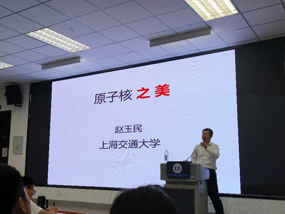 报告会上,赵玉民教授首先结合自身学习经历,与大家分享了有关原子核理论知识的学习感触,拉近了与同学们的距离。随后,赵玉民教授从原子核系统复杂多变之美,条理简单之美,规则对称之美,精微玄妙之美,苍茫辽阔之美,和悦八方之美,民生大用之美七个方进行解读,将原子核的复杂性,壳模型理论,配对原理,原子核结构的对称性,核领域未来发展等内容娓娓道来,一系列的精彩叙述为我院师生描绘出一卷卷核物理领域的瑰丽画卷。此外,赵玉民教授认真回答了关于多学科融合发展的观点,对同学们关于原子核结团衰变预形成,新元素合成实验等问题一一做了回答。后续进一步为同学们分享了论文写作,投稿的一些相关建议。最后,赵玉民教授对bv1946伟德国际始于英国热情相邀,师生积极与会表示感谢,并期待同学们将来能够为核物理事业贡献自己的力量。