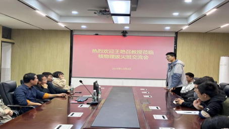 2023年12月6日晚,石家庄铁道大学王艳召教授受邀参加我院核物理拔尖班交流讨论会。21和23级核物理拔尖班学生参加交流讨论会。