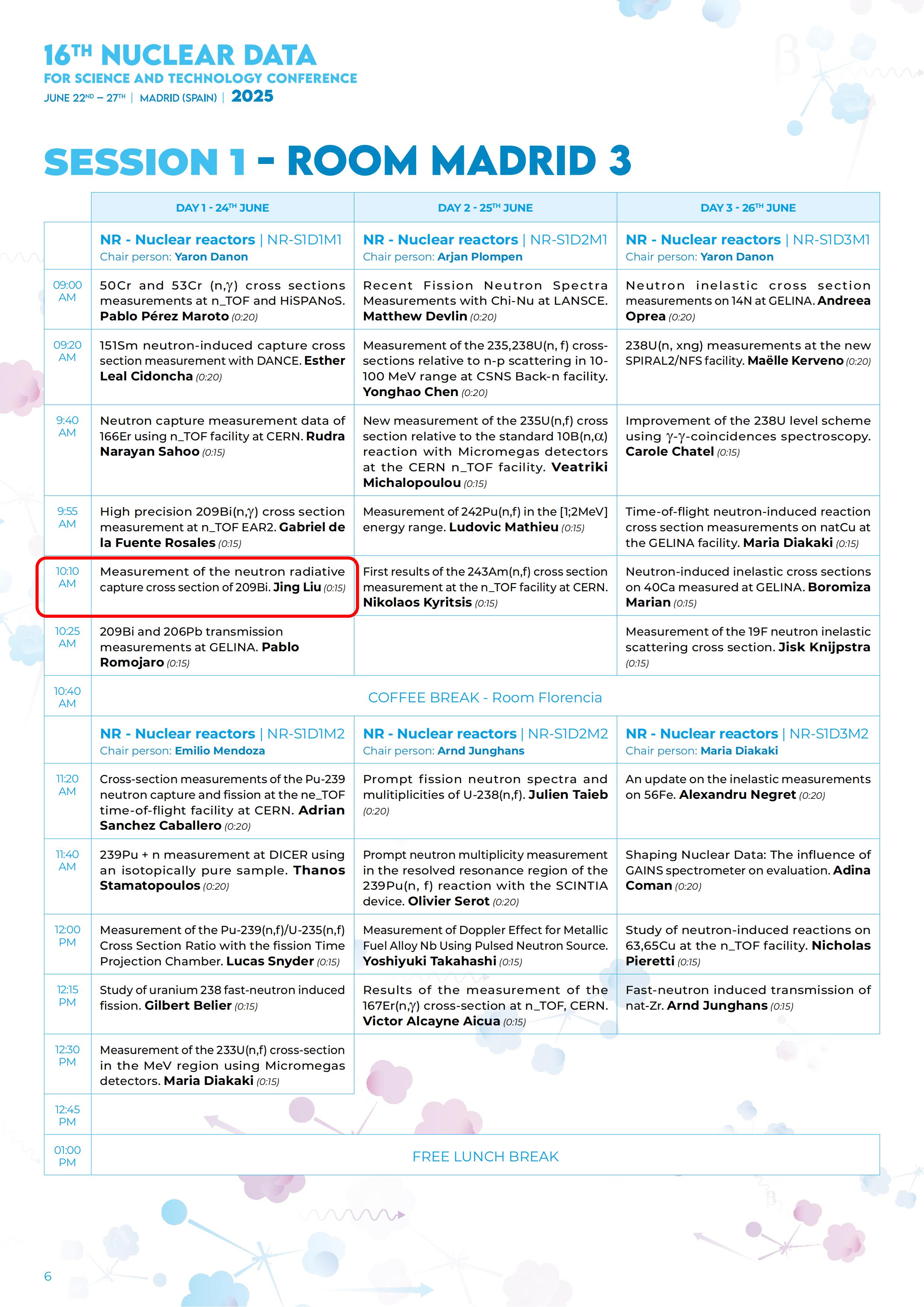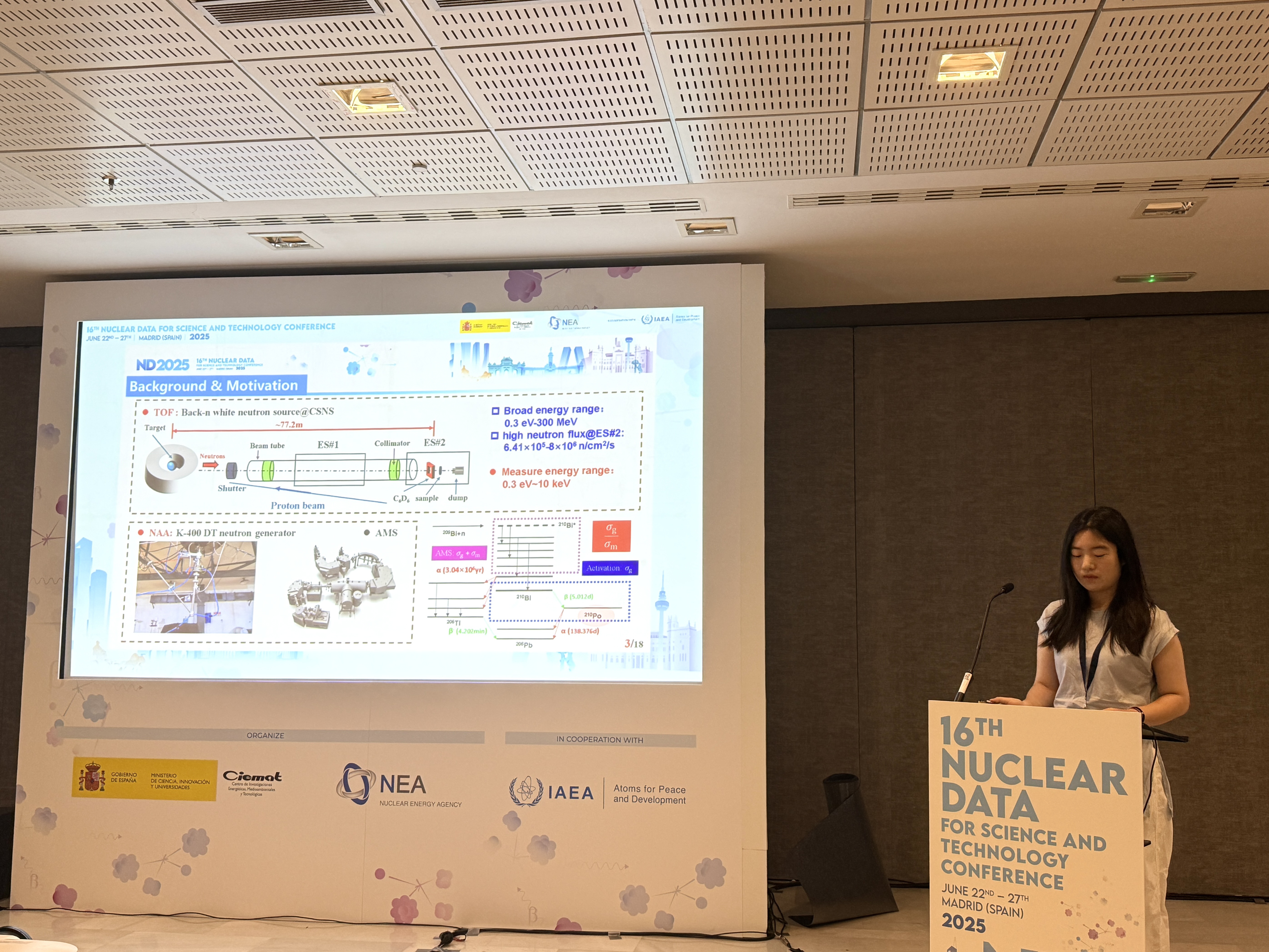 近日,bv1946伟德国际始于英国硕士研究生刘静、栾鹏两位同学受邀参加在西班牙首都马德里举办的国际学术会议——“16th Nuclear Data for Science and Technology Conference (ND2025)”,并以口头报告的形式向国际同行展示了各自的研究成果。国际核数据大会每三年举办一次,是核数据界规模最大、水平最高的学术交流会议。