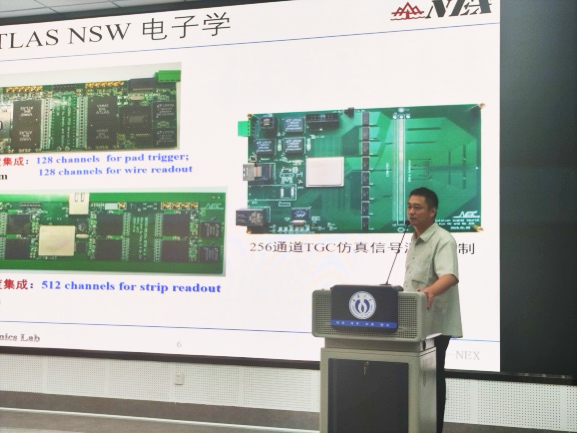杨驰教授系统介绍了高温度、高密度、强磁场与强漩涡等极端条件下的原子核与核物质特性。报告伊始,他为师生介绍了当前科学家如何利用RHIC、LHC等国际大科学装置重现宇宙早期曾存在的极端物质状态-夸克胶子等离子体。随后,用“三万亿度下的核物质”、“由纯能量产生正反物质”和“费米尺度下的双缝干涉”三个重要篇幅,详细介绍了其团队的最新研究成果,并展望了国内新一代电子-离子对撞机在相关物理探索中的独特灵敏度。胡坤研究员则介绍了山东大学在粒子探测器前端电子学方面的最新进展。报告结束后,两位专家与现场师生进行了深入交流。下午3点,杨驰教授、胡坤研究员在核学楼205与我院本科生及研究生进行了座谈,全面介绍了山东大学前沿交叉科学青岛研究院的研究方向、平台资源及2025年研究生招生计划,并热诚欢迎我院学子加盟。