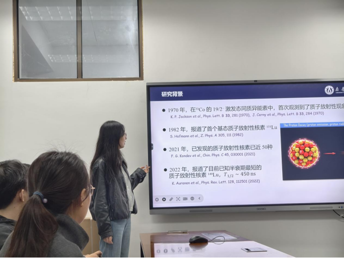 交流会上,李小华教授指导的研究生依次汇报了各自近期的科研进展与阶段性成果,内容涵盖原子核衰变、对称能相关核物理问题等研究方向。陈列文教授认真听取每位同学的汇报,并逐一进行细致点评。结合自身在核物质状态方程、重离子碰撞微观输运模型等领域的深厚积累,陈教授从研究思路、理论方法、结果分析到论文写作等方面提出了诸多建设性意见,并对同学们在研究过程中遇到的具体困惑给予耐心解答。