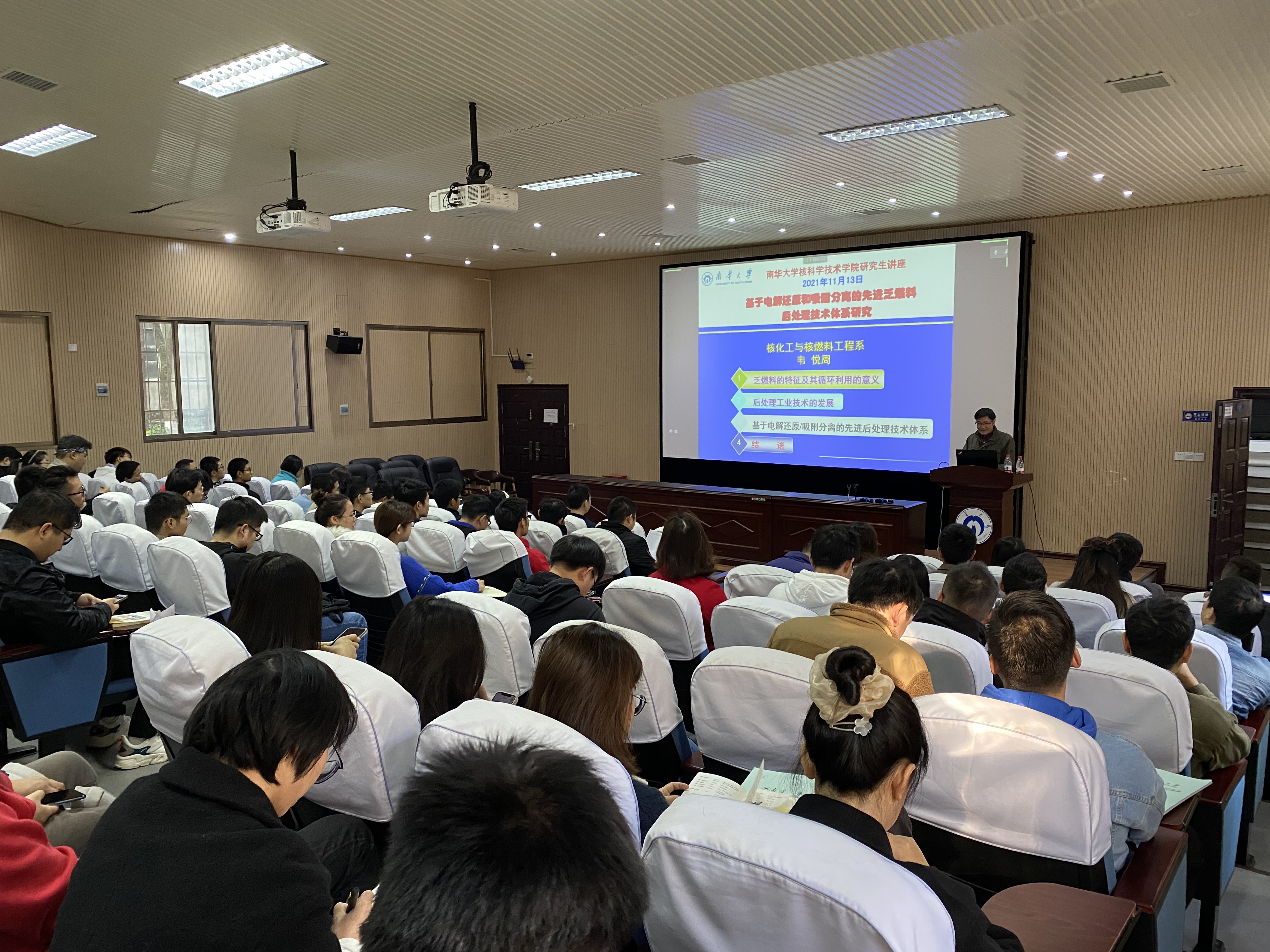 2021年11月13日上午,中心主任韦悦周教授应邀在bv1946伟德国际始于英国虚拟仿真中心为伟的国际1946bv的师生做了一场专业而生动的学术报告——《基于电解还原和吸附分离的先进乏燃料后处理技术体系研究》。本次报告由bv1946伟德国际始于英国副院长郑波主持。