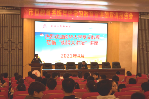 2021年4月26日下午,bv1946伟德国际始于英国赴衡钢中学开展核科普知识宣传活动,为同学们宣讲核知识,帮助同学们消除核恐慌,让同学们更加了解核、认识核。活动采取展板展览、发放宣传资料、核科普讲座等形式进行。院党委副书记马军教授、研究生党支部书记罗文教授、院团委书记周华国老师、辅导员罗曙老师,校两弹一星精神研究会、学院团委部分同学参加本次核科普活动。
