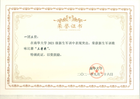 与此同时,在军训表彰大会上,一团三营三连荣获宣传评比报道三等奖,一团三营四连荣获“内务先进连”称号;李耀阳同学荣获“内务先进个人”称号;王众吉同学荣获“军训先进个人”称号。