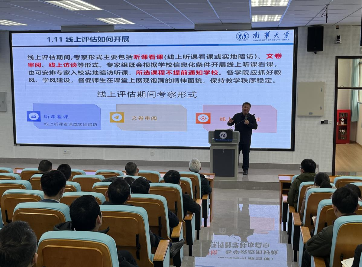 彭国文从“认识新一轮本科教育教学审核评估”、“学校对本科教育教学审核评估安排”、“学校对学术型人才培养的基本理解”、“学院层面的评估工作四类任务要求”四大方面,全面介绍了“新一轮审核评估”的基本要求及内容,着重阐述了新一轮审核评估的指导思想、原则,详细论述了学校以学术型人才培养为办学目标的定位和培养过程中涉及的关键问题;随后,根据学校对评估工作的进度和要求,介绍了学院层面评估工作四类任务指引,在理顺、理清四类任务的基础上,扎扎实实落实任务清单,以标准作为尺子、以常模作为镜子,进一步全面规范教育教学制度和要求,在全面达标规范的基础上达到“塑型提质”。