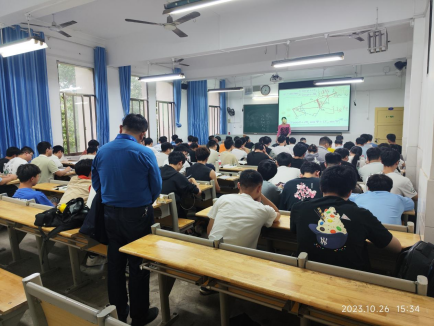 2023年10月26日下午,校党委委员、副校长于涛带领教务部副部长詹晶、教学质量管理科科长杨勇一同走进课堂,深入了解本科教育教学开展情况。bv1946伟德国际始于英国党委书记赵立宏、教务办干事郑晓敏等陪同调研指导。
